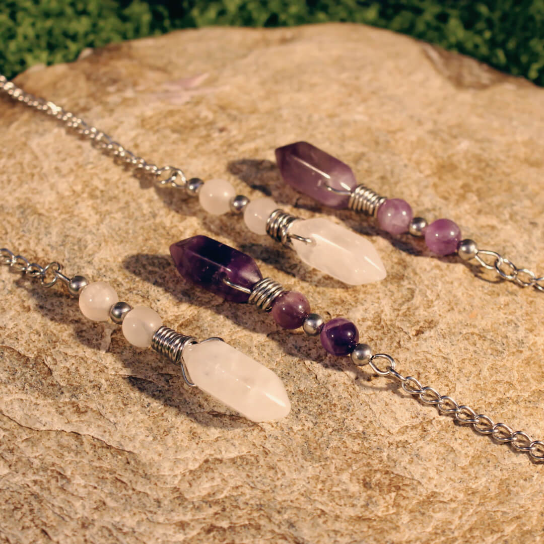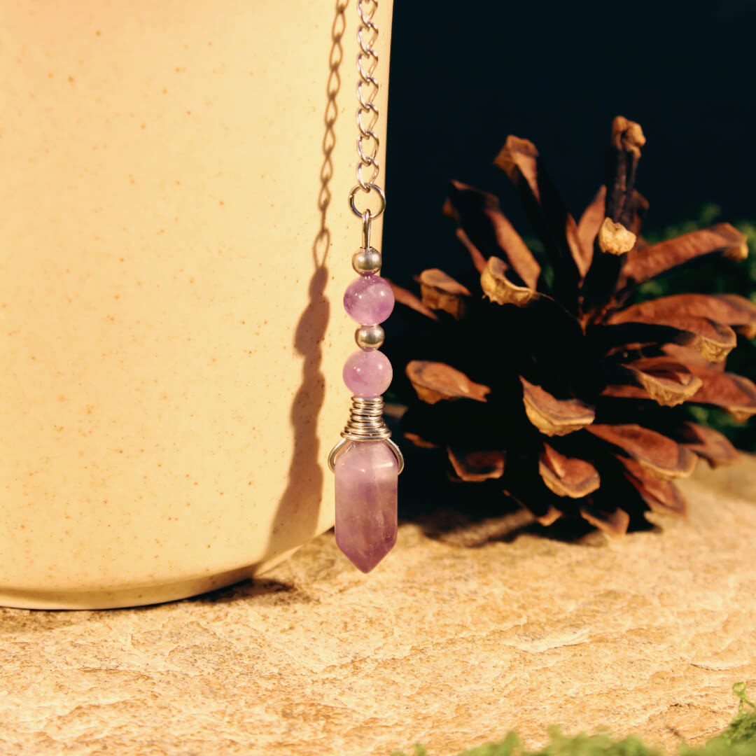 Stor tesil med ametist, en kristall som är uppskattad för sin förmåga att främja lugn och avslappning.
